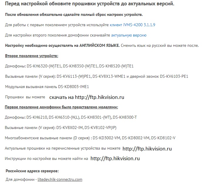 ВЫЗЫВНЫЕ ПАНЕЛИ: (230531) DS-KV6103-PE1(C) Вызывная панель IP-домофона. (924232) DS-KV6113-PE1(C) Вызывная панель IP-домофона со считывателем. (244032) DS-KV6113-WPE1(С) WIFI вызывная панель IP-домофона со считывателем. МОНИТОРЫ: (694328) DS-KH8350-TE1 Монитор IP-домофона (704328) DS-KH8350-WTE1 Монитор IP-домофона с WiFi КОММУТАТОРЫ: (444231) Коммутатор 6 портов, 4 PoE (65Вт/max15Вт на порт); PND-04P-2M-BT1 (Polyvision). (356828) Коммутатор 6 портов, 4 PoE (80Вт/max60Вт на порт); SW-20600 (OSNOVO). КОЗЫРЕК: (902928) Настенный козырёк для вызывной панели; DS-KABV6113-RS. IP-ВИДЕОКАМЕРЫ: (308232) DS-I203(E) (2.8 mm) Бюджетная IP-видеокамера купольная. (671533) DS-2CD2123G2-IS(2.8мм)(D), Видеокамера IP купольная. (026023) Малогабаритный источник питания 12В, Моллюск 12/1,5. (916429) Карта памяти microSDXC, 32 ГБ.