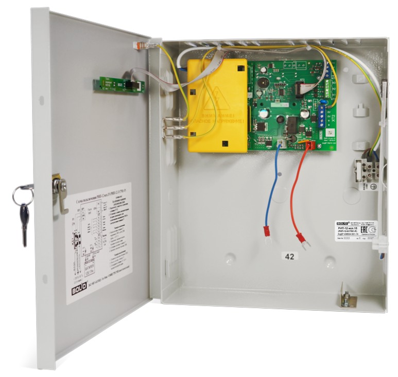 * - Передача команд по интерфейсу на тестирование аккумуляторных батарей (АБ), установленных в «Бокс», и прием сообщений об их наличии и индивидуальном состоянии* - Защита с автоматическим восстановлением работоспособности:- от превышения выходного напряжения- от перегрузок по выходу- от «переполюсовки» АБ- от замыкания клемм подключения АБ* - Контроль:- сетевого напряжения- величины выходного напряжения- величины напряжения АБ и их состояния- связи с Боксом по интерфейсу* - Передача информации о неисправности или отклонении напряжений от нормы с помощью реле* - Световая индикация и звуковая сигнализация:- наличие сетевого напряжения в сети- короткое замыкание или перегрузка по выходу- заряд АБ- отключение АБ при ее разряде- отключение выхода РИП- потери связи с Боксом* - Возможность конфигурирования работы Бокса и отключения звука с помощью кнопки на плате* - Возможность контроля вскрытия корпуса