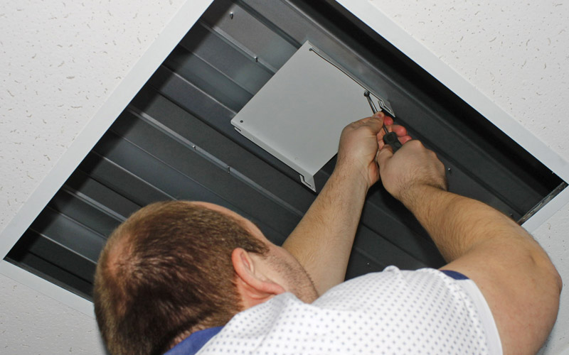 - крепление на потолок;- откидная крышка с фиксацией;- защита от падения частей корпуса и АКБ при открытии (снятии) крышки.