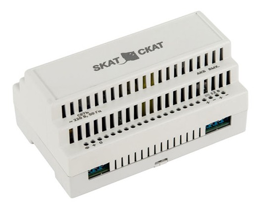 Источник вторичного электропитания резервированный SKAT-12-6,0 DIN предназначен для обеспечения бесперебойным питанием систем охранно-пожарной сигнализации, видеонаблюдения и других потребителей с номинальным напряжением питания 12 В постоянного тока.