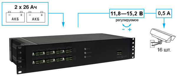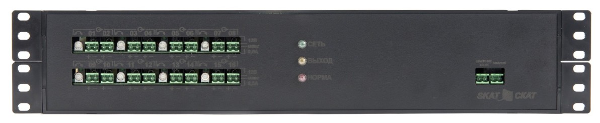 - возможность плавной регулировки напряжения каждой пары выходов;- фильтрация помех для устранения взаимного влияния нагрузок;- электронная защита выходов от перегрузки по току, в т.ч. — короткого замыкания, с восстановлением нормального режима работы после устранения перегрузки;- защита нагрузки от повышенного выходного напряжения (свыше 18 В) при неисправности выходных преобразователей путем срабатывания самовосстанавливающегося предохранителя;- автоматический переход в режим резервного питания нагрузок от АКБ, при отключении электрической сети;- защита устройства и нагрузки от неправильного подключения (переполюсовки) клемм АКБ посредством плавкого предохранителя;- защита от короткого замыкания клемм АКБ посредством плавкого предохранителя;- защита АКБ от глубокого разряда;- передача извещений о наличии сети (переходе на резерв) и аварии ЗУ посредством выходов «открытый коллектор»;- защита питающей сети от короткого замыкания в устройстве посредством плавкого предохранителя.