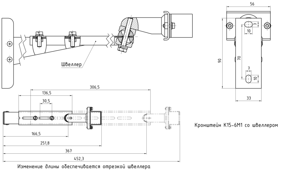 Кронштейн "К15-6М1" предназначен для крепления извещателя "СПЭК-7-2" и "СПЭК-7-6" и их модификаций. Он позволяет расширить возможности юстировки извещателя.Кронштейн комплектуется дополнительным швеллером, что позволяет увеличить длину вылета на 224 мм.Длина вылета кронштейна от 228 до 452 мм (со швеллером).При необходимости закрепить извещатель на небольшом расстоянии от края кронштейна допускается обрезать швеллер.