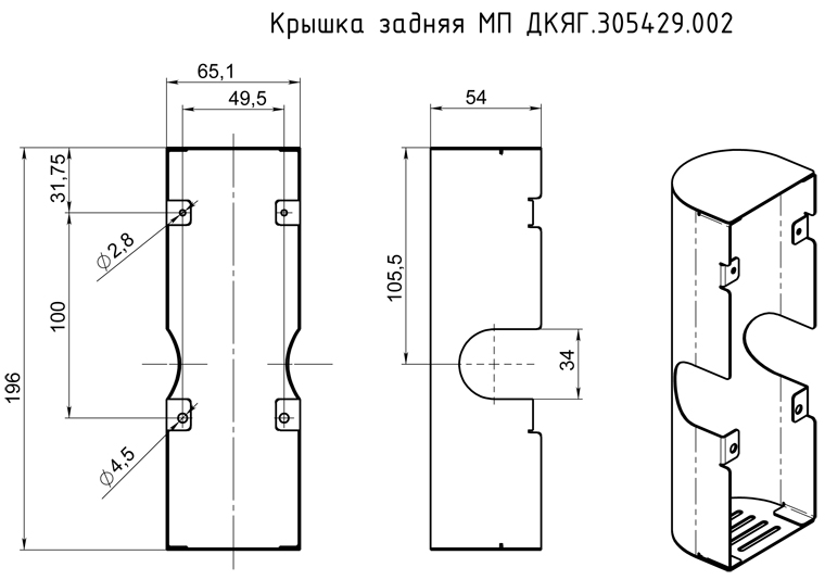 Крышка задняя МП - декоративный элемент для закрытия задней части блока извещателя "СПЭК-1115" и "СПЭК-1117" и их модификаций при установке на трубу поперек её оси, используется совместно с Кронштейн КУ 180х400 или Кронштейн КП 350