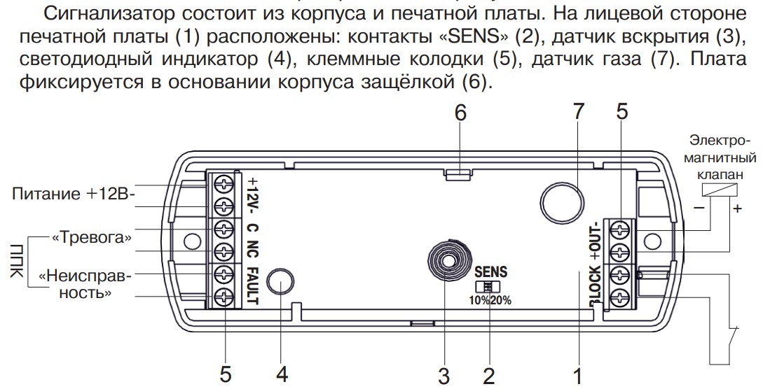 Предназначен для обнаружения опасной концентрации в воздухе горючих газов (метана, пропана и др.), формирования извещения о тревоге и подачи сигнала на пуск системы противодействия взрыву.
