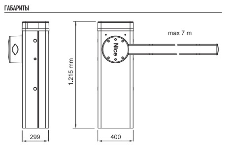 • Габаритные размеры тумбы шлагбаума, мм400х300х1215