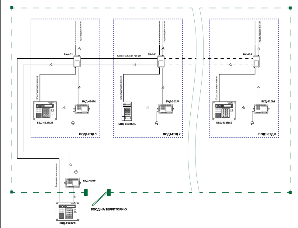 Применяется совместно с блоком управления домофона БУД-420Р в составе систем "VIZIT 8+1", "VIZIT 8+2" ограничения доступа в огороженную придомовую территорию и устанавливается в каждом подъезде / доме внутри огороженной территории (до 8 подъездов).