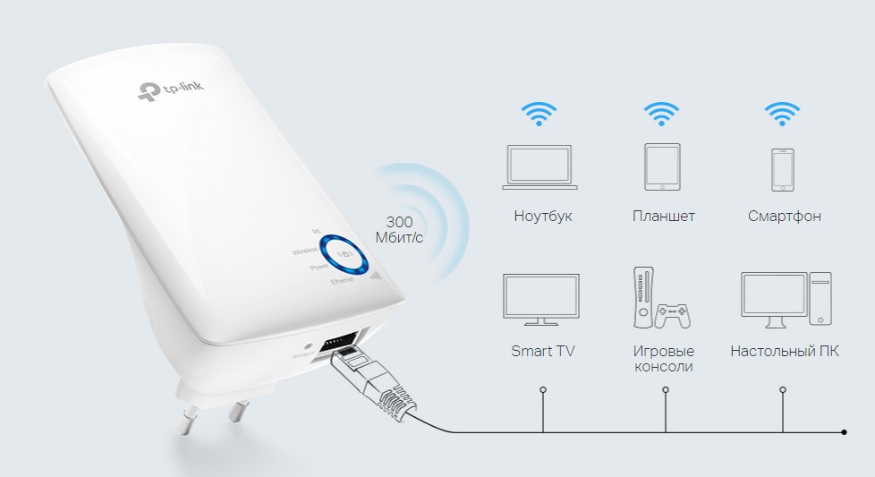 Усилитель Wi-Fi сигнала, благодаря порту Ethernet усилитель сигнала может работать в качестве беспроводного адаптера для подключения проводных устройств(камер, регистраторов, принтеров,телевизоров со Smart TV).