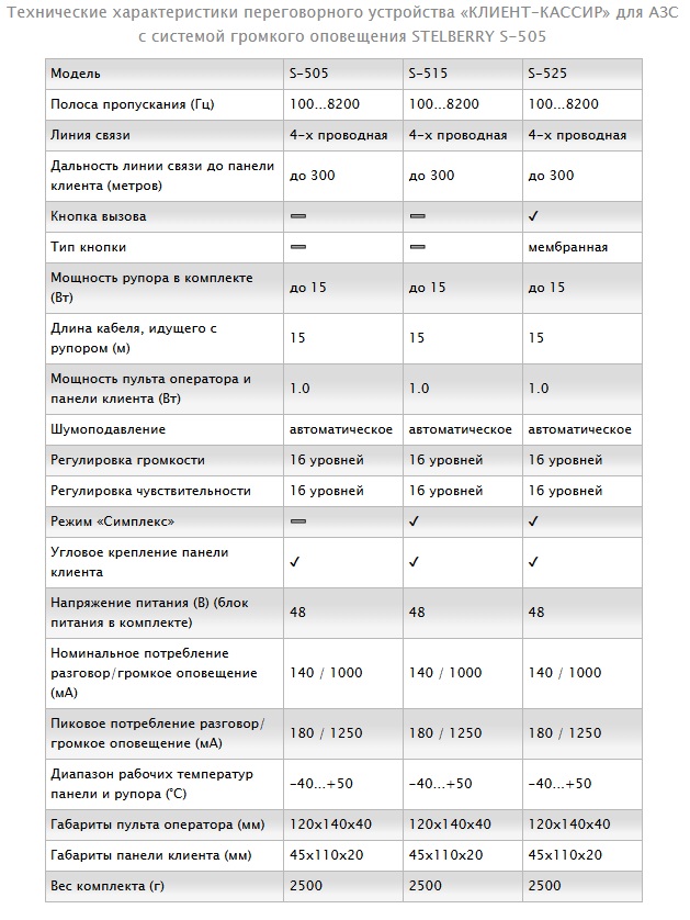 Сравнительные характеристики