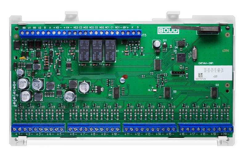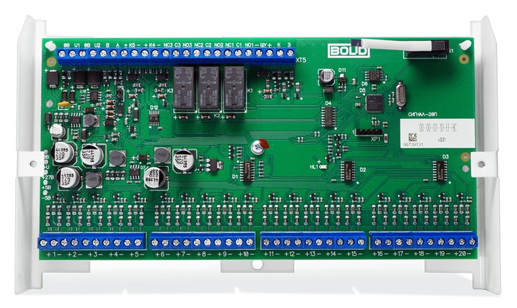 Область применения прибора: охрана зданий и сооружений (офисов, магазинов, банков, складских помещений, жилых домов, учреждений, предприятий) от несанкционированных проникновений и пожаров.ППК предназначен для:- контроля 20-ти зон охранной, пожарной, тревожной или технологической сигнализации;- приема извещений от автоматических и ручных пассивных, активных (питающихся по шлейфу) и четырехпроводных пожарных или охранных извещателей, с нормально-замкнутыми или нормально-разомкнутыми внутренними контактами;- управления звуковыми и световыми оповещателями (ЗО и СО);- приема команд и выдачи извещений по интерфейсу RS-485 на сетевой контроллер (пульты контроля и управления «С2000-КС»1), «С2000», «С2000М» либо компьютер с установленным ПО АРМ «Орион»);- выдачи извещений «Пожар» и «Неисправность» на пульт пожарной части (ПЧ);- выдачи тревожных извещений на пульт централизованного наблюдения (ПЦН);- считывания кода ЭИ типа «Dallas Touch Memory» или иных, с выходным интерфейсом 1-Wire.Прибор обеспечивает:- взятие под охрану или снятие с охраны отдельных ШС или произвольных групп шлейфов, в зависимости от команд сетевого контроллера;- дистанционное или локальное управление выходными реле;- контроль на обрыв и короткое замыкание линий подключения оповещателей по выходам «реле 4» (К4), «реле 5» (К5);- подключение резервного ввода электропитания к дополнительному входу;- трансляцию кода ЭИ (кода хозоргана) сетевому контроллеру для централизованного управления разделами;- отображения состояния раздела на внешнем двухцветном индикаторе.