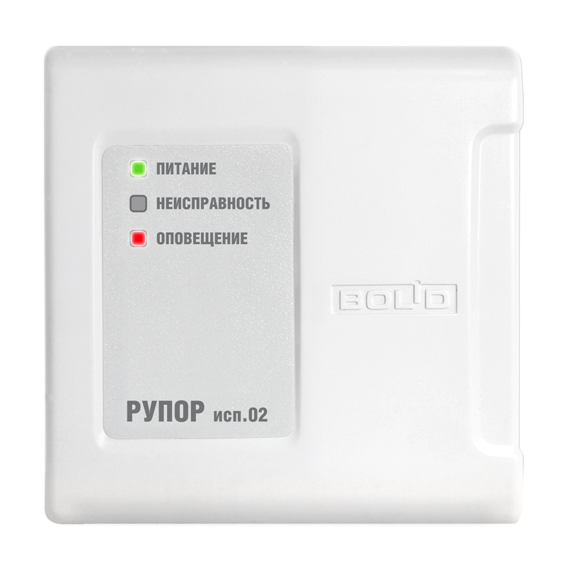 Блок речевого оповещения «Рупор исп.02» предназначен для трансляции предварительно записанной речевой информации о действиях, направленных на обеспечение безопасности при возникновении пожара и других чрезвычайных ситуаций.Блок применяется как компонент блочно-модульного прибора управления в системах оповещения и управления эвакуацией и в других системах оповещения совместно с пультом контроля «С2000М» (версии 3.00 и выше) или персональным компьютером с установленным ПО АРМ «Орион».