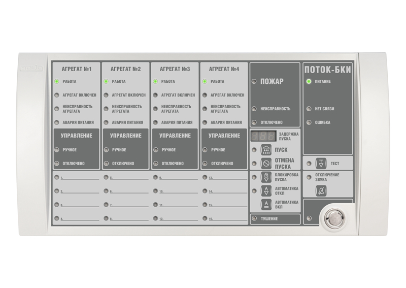 Блок индикации и управления "Поток-БКИ" предназначен для работы в составе систем водяного и пенного пожаротушения в ИСО «Орион» совместно с прибором пожарным управления автоматическими средствами водяного пожаротушения«Поток-3Н» версии 1.04 и выше под управлением сетевого контроллера (пульта «С2000М» версии 2.03 и выше либо АРМ «Орион Про» 1.12).
