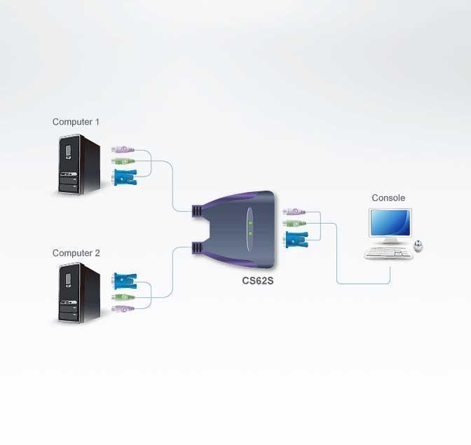 CS62S-A7 – KVM Переключатель ATEN CS62S отличается удобством конструкции и встроенными кабелями длиной 0,9 метра. Он позволяет управлять 2 серверами с одной консоли.Характеристики ATEN CS62S:- Одна PS/2-консоль управляет двумя PS/2-компьютерами- Компактная конструкция, включая 0,9 м кабелей- Конструкция «все в одном»- Высочайшее качество видеоизображения – до 2048 x 1536; DDC2B- Функция автосканирования для отслеживания работы компьютеров- Внешнее питание не требуется- Поддержка ОС: Windows 2000/XP/Vista, LINUX и FreeBSD