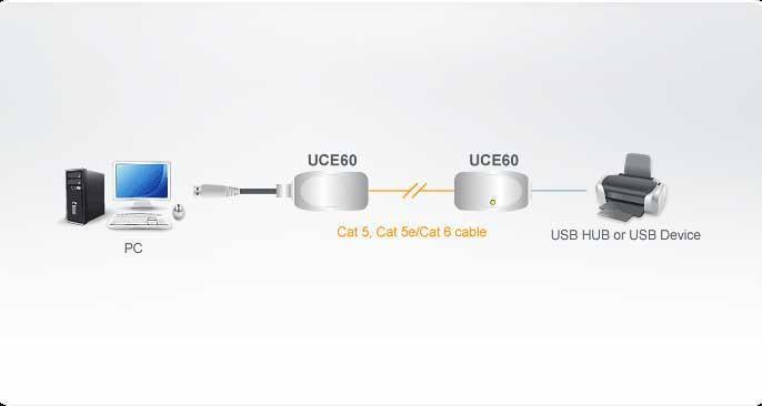 UCE60-AT – USB Удлинитель ATEN UCE60 позволяет удаленно подключать USB устройство или концентратор к компьютеру на расстоянии до 60 метров, преодолевая привычные ограничения передачи USB сигналов по стандартному кабелю. Передача сигнала осуществляется по кабелю «витая пара» категории 5(или выше).Характеристики ATEN UCE60 :- совместимость с USB 1.1.- поддержка полноскоростных (12 МБ/с) или низкоскоростных (1,5 МБ/с) устройств USB.- увеличивает дальность передачи данных устройства USB до 60 метров с помощью кабеля Cat 5/ Cat 5e/ Cat 6.- встроенные приемопередатчики USB 1.1 предотвращают потерю сигнала.- самое недорогое решение для передачи сигналов USB на более дальние расстояния.- не требуется установка дополнительного ПО.- специальный индикатор сообщает о необходимости дополнительного внешнего источника питания.- поддержка различных платформ: Windows, Mac.