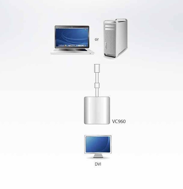 VC960-AT – Адаптер ATEN VC960 Mini DisplayPort – DVIпозволяет подключать устройство с портом Mini DisplayPort к дисплею с разъемом DVI.Адаптер VC960 предназначен для продукции Mac, включая MacBook, MacBook Pro, MacBook Air, Mac mini и Mac Pro.Характеристики ATEN VC960:- поддержка VGA, SVGA, XGA, SXGA, UXGA и разрешений до 1920x1200 (ПК) / 1080p (HDTV)- поддержка продукции Mac, включая MacBook, MacBook Pro, MacBook Air, Mac mini и Mac Pro- не требуется установка программного обеспечения или драйверов