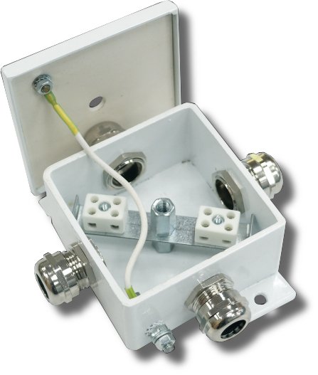 Корпус коробки целиком изготовлен из стали 2,5-3 мм. Имеет двойную защиту от коррозии ( гальваническое покрытие и покраска). Крышка прижимается к корпусу через силиконовую прокладку. Винт крепления крышки снабжен уплотняющей тарельчатой шайбой с фторопластовым покрытием. Внутри корпуса коробки установлены керамические клеммные колодки, обеспечивающие соединение "под винт", и клемма заземления. В боковых стенках устанавливаются металлические кабельные вводы. Крепление коробки к элементам конструкций рекомендуется осуществлять на приварные пластины с применением гаек и винтов или с помощью саморезов и металлических дюбелей.Коробки предназначены для монтажа кабельных линий с огнестойким кабелем, но могут применяться с любыми другими кабелями в целях улучшения пожаробезопасности электропроводок.Гермоввод под кабель 6 - 12 мм2 (по требованию заказчика могут устанавливаться кабельные вводы иного диаметра при наличии технологических возможностей изготовления)Обеспечивают огнестойкое соединение кабелей с пределом FR 120 минут и более при температурном воздействии 750 – 800° ССертификационными испытаниями подтверждено сохранение работоспособности до температуры 1020° С при напряжении 300 В (с учетом требований п.4.15 СП5 испытания проводились по ГОСТ Р 53316).