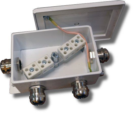 Корпус коробки целиком изготовлен из стали 2,5-3 мм. Имеет двойную защиту от коррозии ( гальваническое покрытие и покраска). Крышка прижимается к корпусу через силиконовую прокладку. Винт крепления крышки снабжен уплотняющей тарельчатой шайбой с фторопластовым покрытием. Внутри корпуса коробки установлены керамические клеммные колодки, обеспечивающие соединение "под винт", и клемма заземления. В боковых стенках устанавливаются металлические кабельные вводы. Крепление коробки к элементам конструкций рекомендуется осуществлять на приварные пластины с применением гаек и винтов или с помощью саморезов и металлических дюбелей.Коробки предназначены для монтажа кабельных линий с огнестойким кабелем, но могут применяться с любыми другими кабелями в целях улучшения пожаробезопасности электропроводок.Гермоввод под кабель 6 - 12 мм2 (по требованию заказчика могут устанавливаться кабельные вводы иного диаметра при наличии технологических возможностей изготовления)Обеспечивают огнестойкое соединение кабелей с пределом FR 120 минут и более при температурном воздействии 750 – 800° ССертификационными испытаниями подтверждено сохранение работоспособности до температуры 1020° С при напряжении 300 В (с учетом требований п.4.15 СП5 испытания проводились по ГОСТ Р 53316).