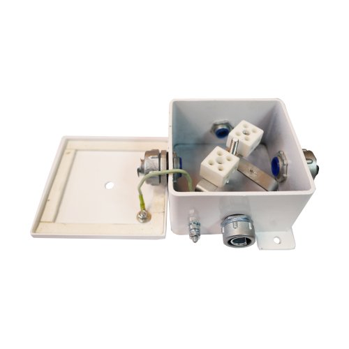Корпус коробки целиком изготовлен из стали 2,5-3 мм. Имеет двойную защиту от коррозии (гальваническое покрытие и покраска). Крышка прижимается к корпусу через силиконовую прокладку. Винт крепления крышки снабжен уплотняющей тарельчатой шайбой с фторопластовым покрытием. Внутри корпуса коробки установлены керамические клеммные колодки, обеспечивающие соединение "под винт", и клемма заземления. В боковых стенках устанавливаются металлические кабельные вводы. Крепление коробки к элементам конструкций рекомендуется осуществлять на приварные пластины с применением гаек и винтов или с помощью саморезов и металлических дюбелей.Используются на улице и внутри помещения (IP66), обеспечивают высокий уровень механической защиты и защиту от грызунов. Легко выдерживают падение гири 2 кг с высоты 1 метр.Гермоввод под кабель 6 - 12 мм (по требованию заказчика могут устанавливаться кабельные вводы иного диаметра при наличии технологических возможностей изготовления).Обеспечивают огнестойкое соединение кабелей с пределом FR 120 минут и более при температурном воздействии 750...800°С