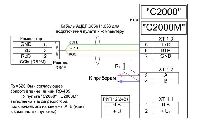 Предназначен для подключения пульта С2000 к компьютеру по последовательному интерфейсу RS-232.