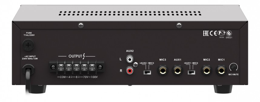 Трансляционный усилитель предназначен для построения систем речевого оповещения, музыкальной трансляции и фонового озвучивания помещений на основе как трансляционных громкоговорителей, так и низкоомных акустических систем.