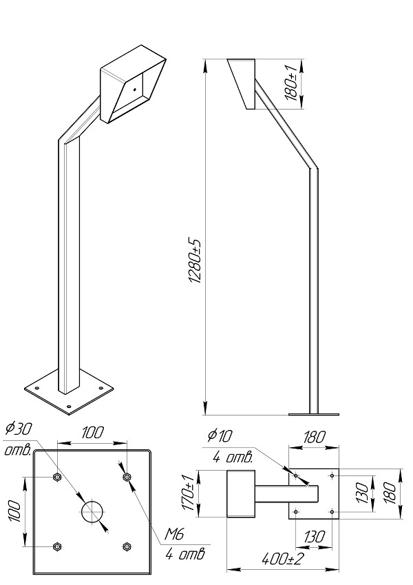 ● труба 30х60 с двумя приварными пластинами 1 шт● съемный защитный кожух с диэлектрической пластино 1 шт● электрический клеммник на 5 контактов 1 шт● закладная пластина для бетонирования (для комплекта «Базовый») 1 шт● комплект оцинкованного крепежа для бетонирования (шпилька М10х170 – 4 шт, гайка М10 - 8 шт, шайба М10 – 4 шт) (для комплекта «Базовый») 1 шт● паспорт 1 шт
