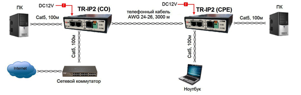 Устройство предназначено для увеличения дальности передачи данных в локальной сети.
