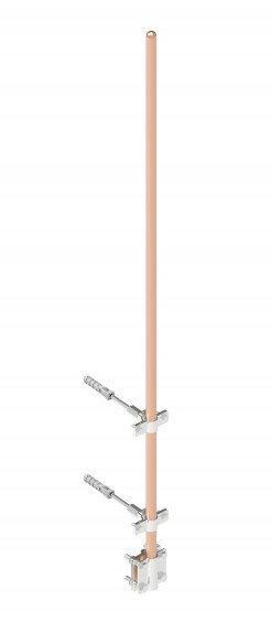 Молниеприемник с держателями устанавливается на вертикальную поверхность (например, стена, дымовая труба). В комплект молниеприемника входит установочный соединитель для подключения токоотвода. Длина - 1 метр. Материал стержня - медь, материал держателей и соединителя - нержавеющая сталь.