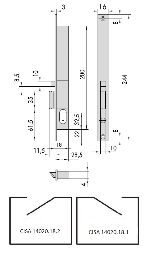 Для алюминиевых и пластиковых профильных дверей. Электроуправляемая защелка, овальный цилиндр, расстояние от торца двери до середины цилиндра 18 мм, напряжение 12 В, не реверсивный.