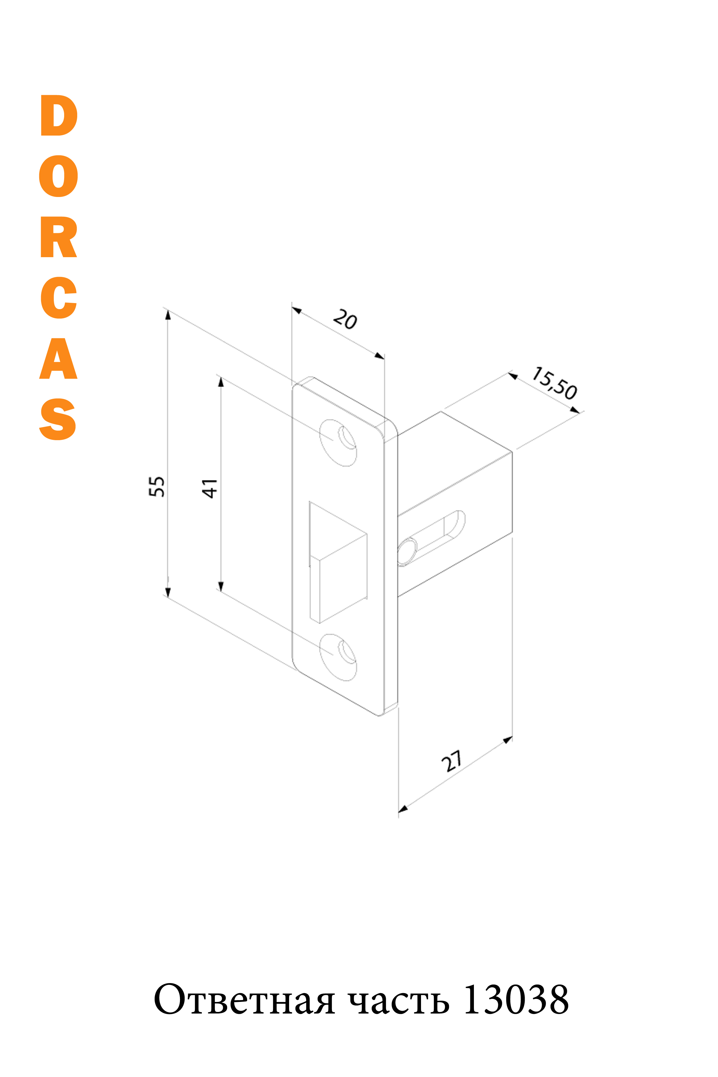 Ответная часть, обычно используется в место механического замка. Работает в паре с электромеханическими защелками. Габаритные размеры: 27х55х15.50 мм